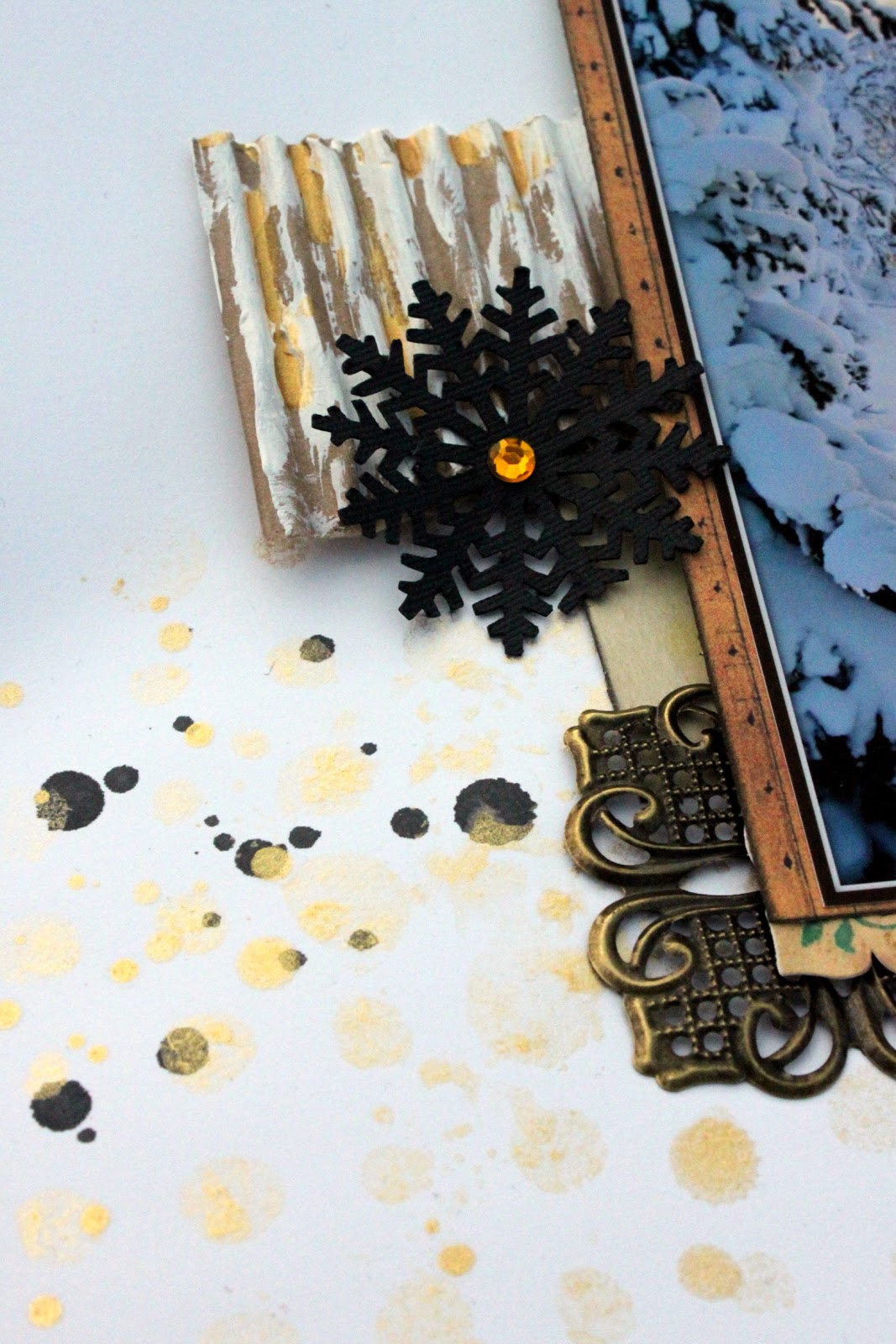 Jag använde också två (svarta!) snöflingor på layouten, utskurna med min Silhouette Cameo.